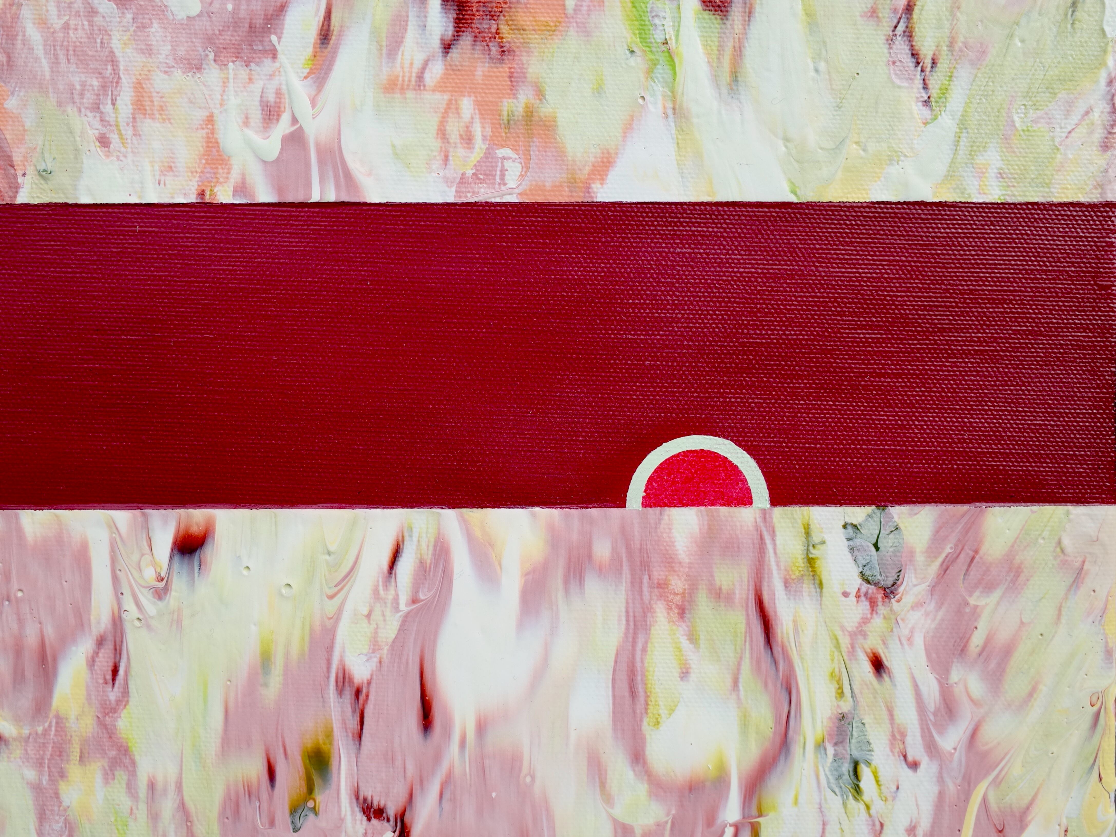 ※アクリル絵具を少しゆるく溶いたものを、水平に置いたキャンバスに垂らすように置き、ペインティングナイフで混ぜながら制作しています。色同士を画面上で混ぜ合わせることにより色幅を作り出し、その中でも完全に混ざり切らない状態の色や表情を大切に残しています。」