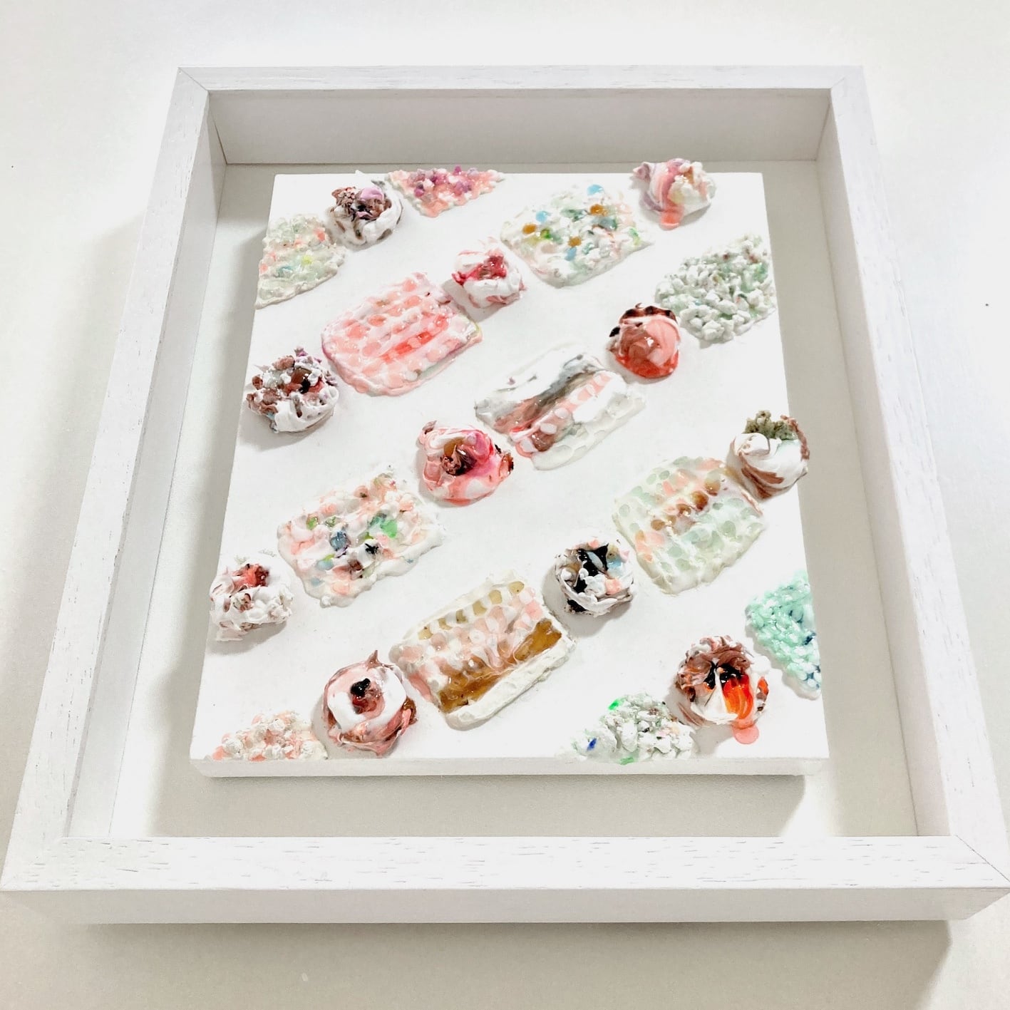◉作品はモデリングペーストを使用し、凹凸のついたものになります。凹凸部分を指で押すなどすると破損の可能性がありますので、できるだけお手を触れずに保管・展示ください。