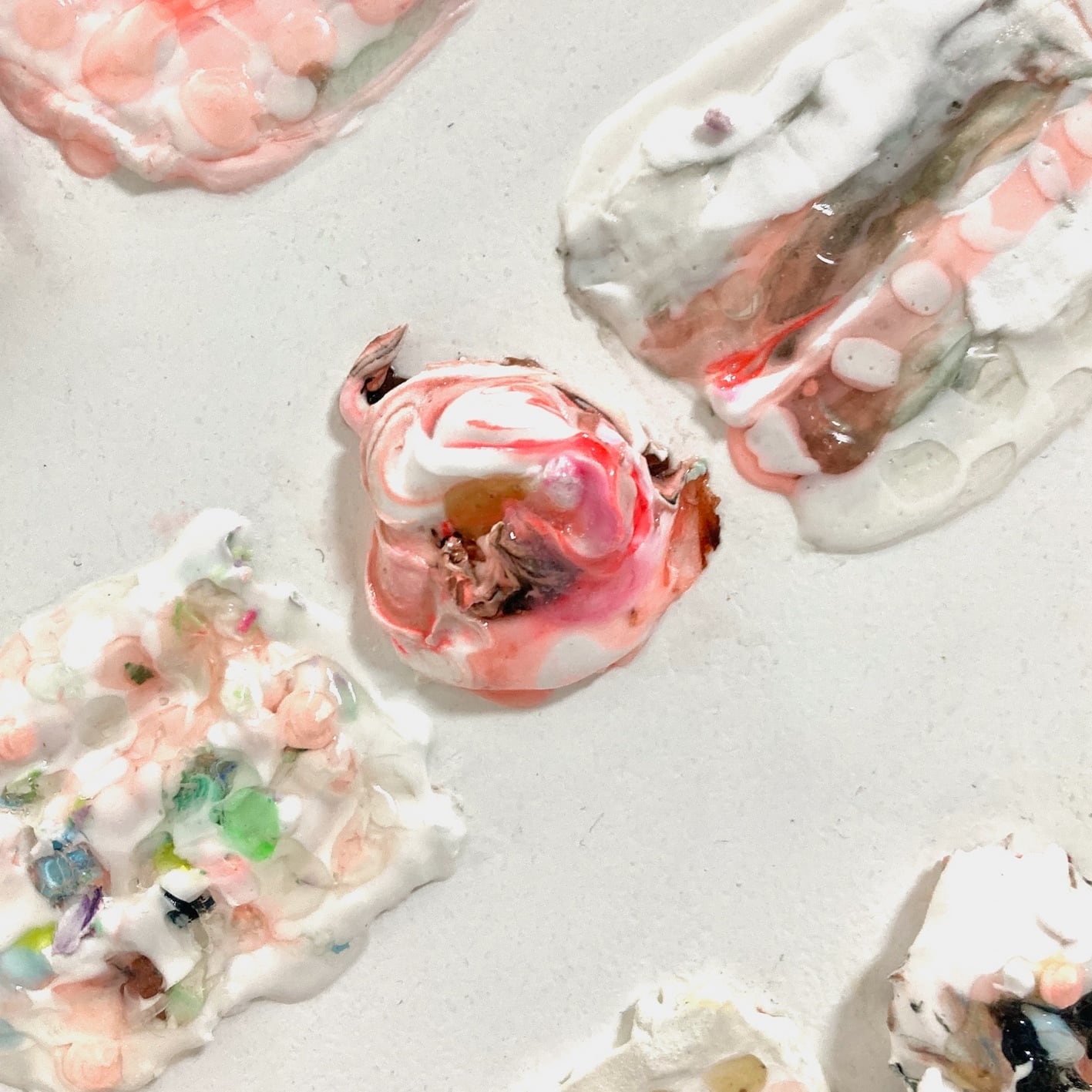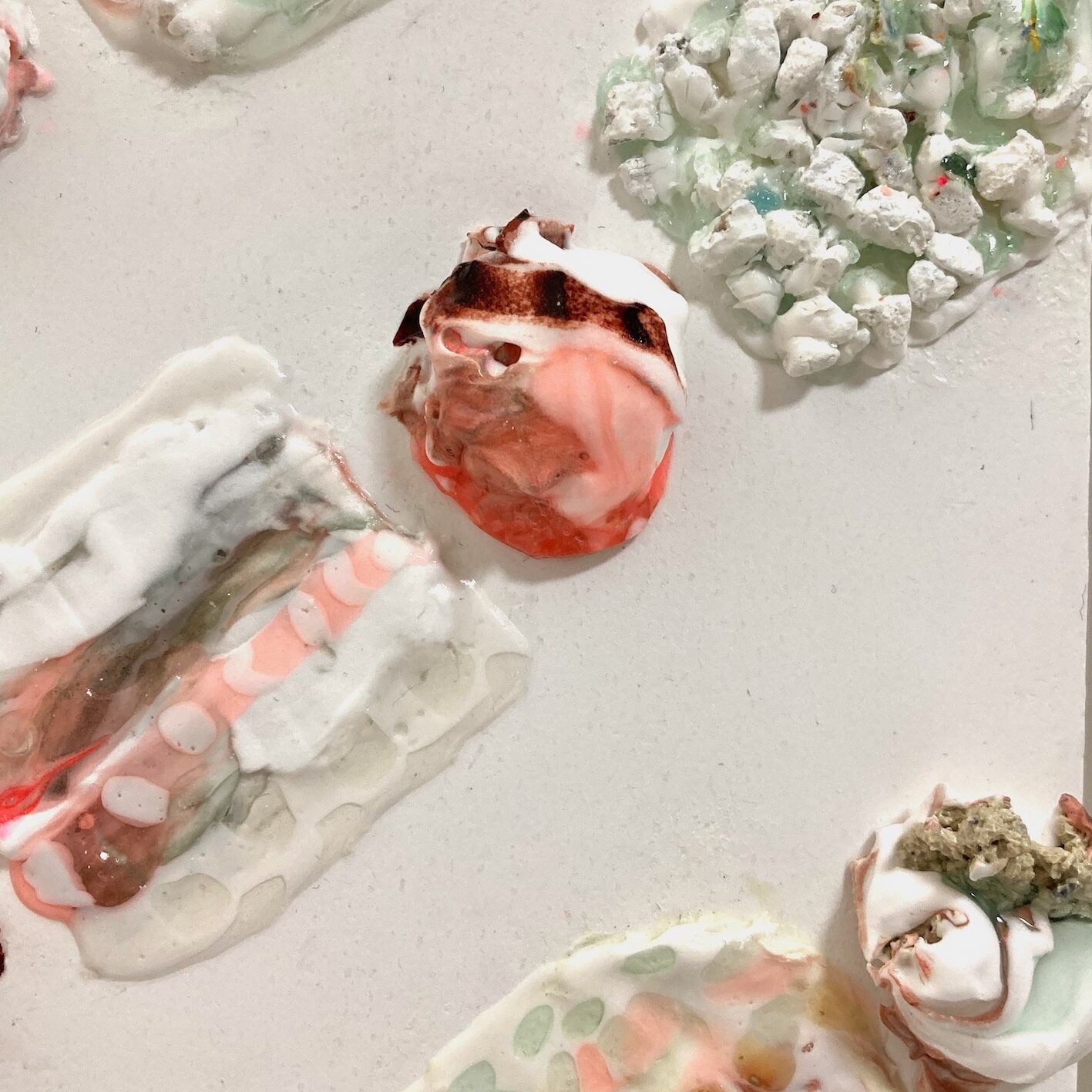 作品は主にモデリングペーストを使用して凹凸をつけ、アクリル絵の具で着彩しております。この作品を作るきっかけとなった背景の文章を下記に掲載いたします。是非併せてご覧くださいませ。