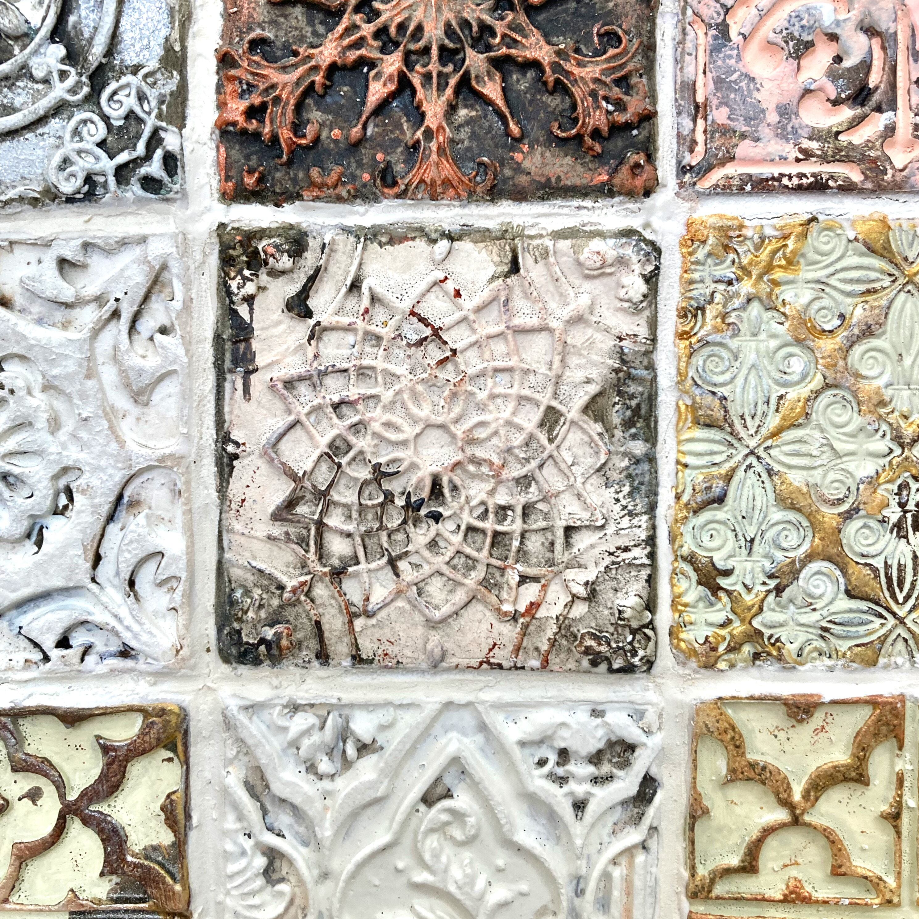 「Object-8」アンティーク ヴィンテージ タイルアート テクスチャーアート 抽象 原画 コンテンポラリーアート モダンアート