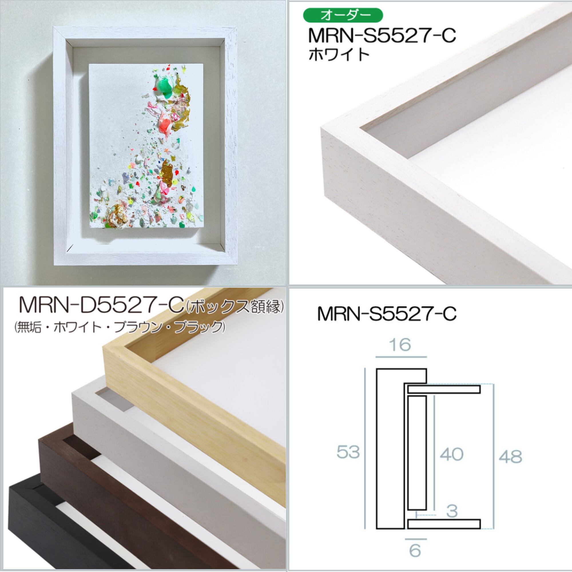 オーダー額縁(木製BOX額縁)を販売価格+¥6600(税込)にて承ります。